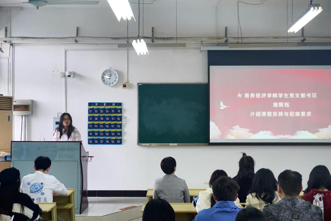 随后,商务经济学院学生党支部书记施甄钰介绍本次入党积极分子培训班课程安排与纪律要求。她详细阐述了培训的课程安排,本次培训将涵盖理论学习、实践活动、交流研讨等多个方面,她希望大家在培训中能够进一步确立正确的入党动机,坚定初心,牢记使命,为全面建设社会主义现代化国家、全面推进中华民族伟大复兴而努力奋斗。