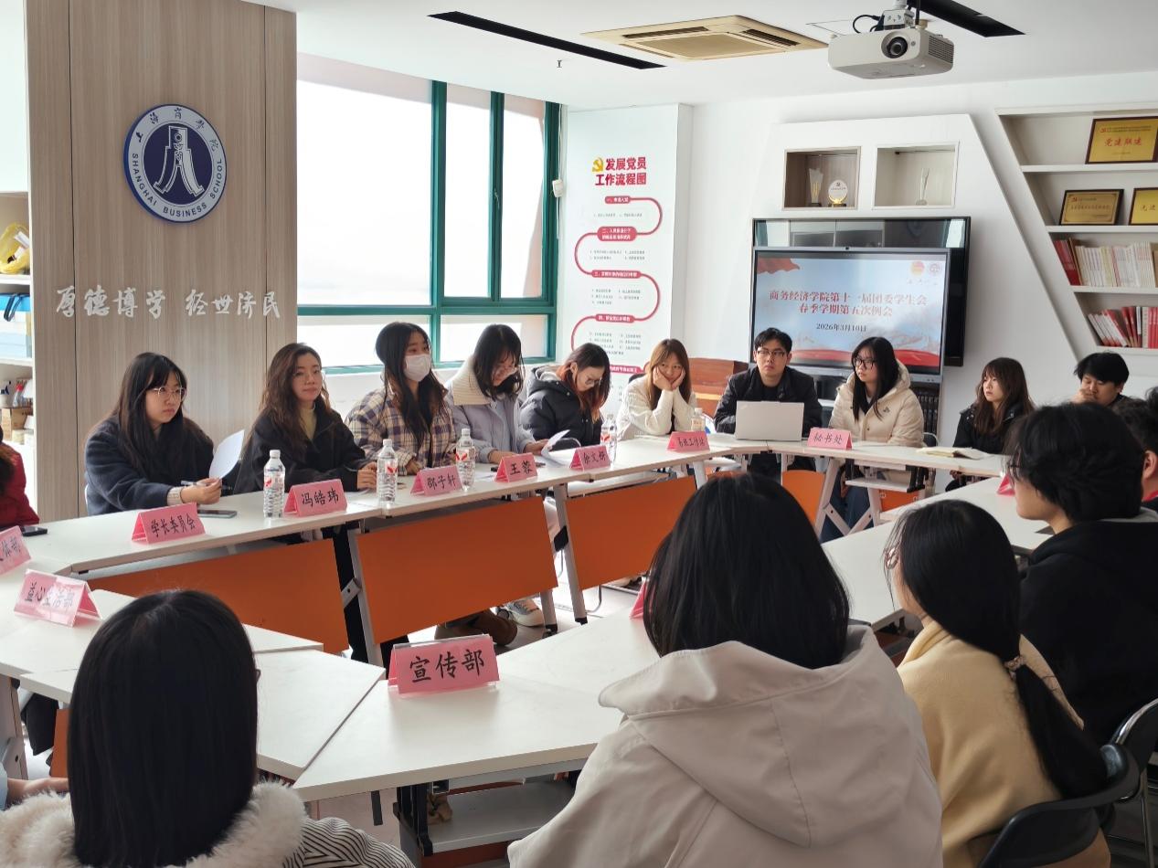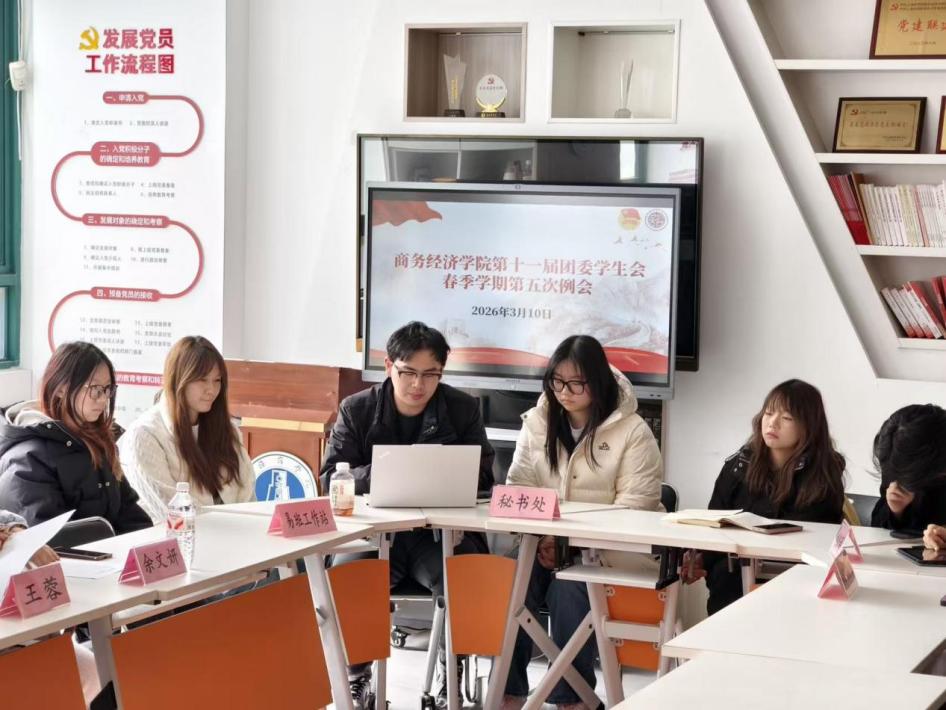会议伊始,团委书记邵子轩对新学期团学工作作出系统安排,并对全体团学干部提出明确要求:需积极主动投身服务集体的实践锻炼,在提升自身综合素质的同时,切实发挥“传帮带”作用,带领部门成员共同进步。针对第十二届团学干部竞选筹备工作,她强调各部门应有计划地着重培养有留任意愿的骨干力量,激励更多优秀学子在团学平台上扎根成长,为商经团学事业的高质量发展持续注入青春动能。