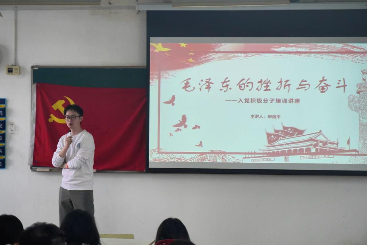 开班仪式后,商务信息学院团委书记宋逸平为学员们讲授第一课《毛泽东的挫折与奋斗》。