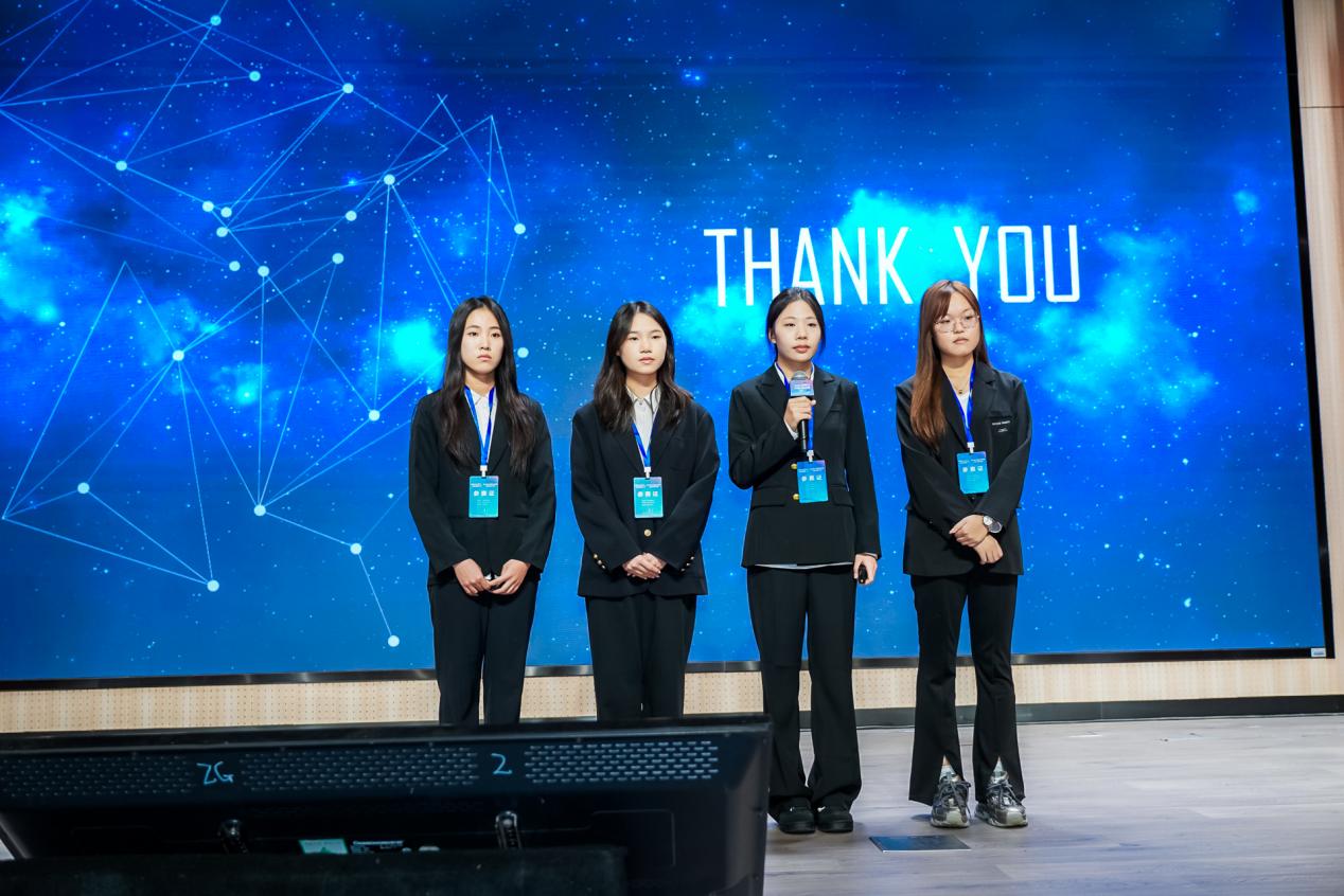 决赛现场,队长梁柯鑫作为团队汇报代表,以沉稳自信的台风、清晰流畅的表达,成为现场一大亮点。汇报中,她紧扣项目核心,从科技保险定义切入,结合上海该行业发展现状,通过详实数据与直观图表呈现研究成果,随后以“集成电路共保体”这一上海具体的科技保险创新实践为案例,清晰阐述了科技保险的重要性,同步展现这一“黄金赛道”的就业现状,呼吁有志青年投身其中贡献力量,将专业的行业分析转化为生动易懂的“青春表达”。面对评委们的专业提问,团队成员根据调研实践从容应答,展现出对行业的自我理解和分析。