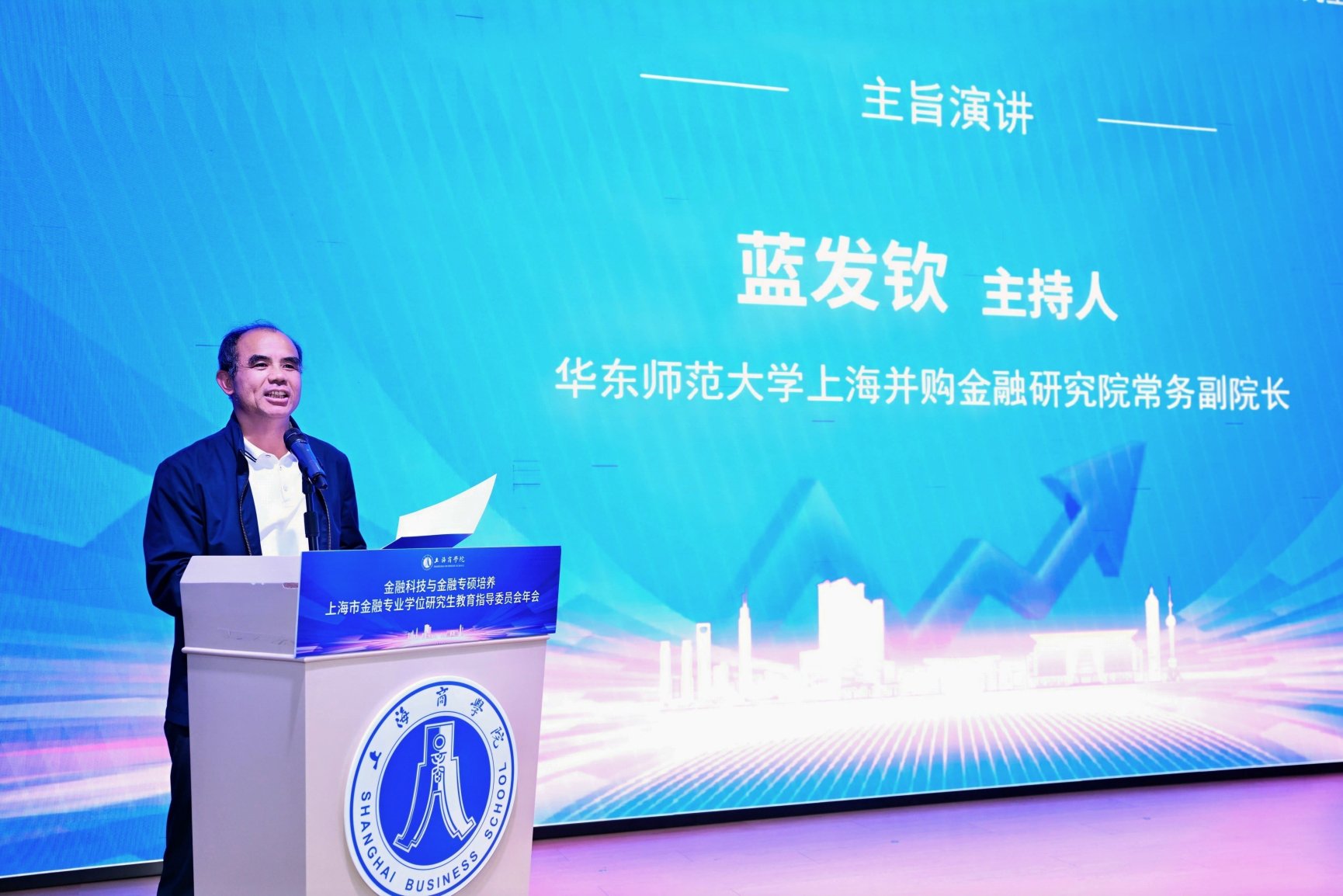 第二轮主旨演讲由上海金融专业学位研究生教育指导委员会副主任委员、华东师范大学上海并购金融研究院常务副院长蓝发钦主持。